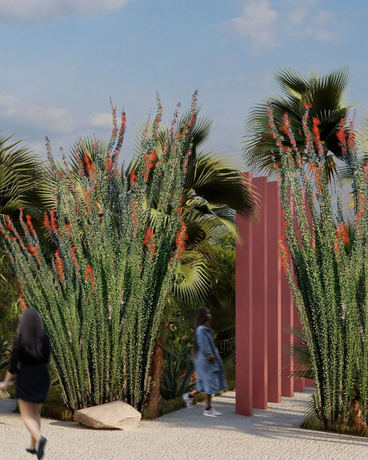 This border instillation allows visitors to physically move through Corten posts, which allude to the border between Mexico and the United States. A border state, after the Mexican-American war, New Mexico saw the construction of a border. Relationships between indigenous communities were disrupted, much like the Spanish use of the Camino Real interrupted the system of indigenous networks.